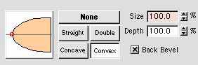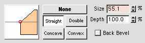 | 6. The lower leg is actually made of two different objects. The first one is still another beveled extrusion object. The upper leg is the same thing but bigger with the bottom half cut off. | ![]() ![]() ![]() ![]() |