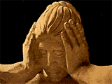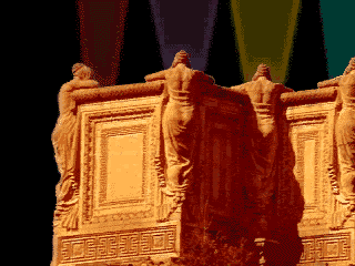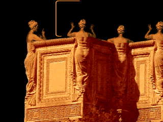 I was part of a team of artists that had familiarity with multimedia tools, such as Photoshop, Premiere, Director, and 3-D modelling software. Our mission was to create artistic pieces that would be accessible from an interface designed to display them after the Playground exhibit was over-an archive of the time and place. We had an incredible array of machinery and software to work with and during our daily volunteer time we could play with it and explain, to those that dropped by the exhibit area, how we were using the tools. I met, talked, and taught an enormous amount of people who were extremely interested in creating and realizing their own creative ideas. They knew the tools were available and here they could see how they worked in practice. This is the piece that I was working on during my volunteer time. I had always been fascinated with the sculptures of the women that graced the architecture of the Palace of Fine Arts (home of the Exploratorium). Their faces were rarely seen or photographed due to their placement on the colonnade. (I was only able to unearth one taken during the reconstruction when the Women were disassembled.) They were concieved by sculptor, Ulric Ellerhusen, to express the melancholy of life without ART They are referred to as the Weeping Women, but I think they have better things to do. Perhaps late at night, they are working on their own art, probably on computers and together, helping one another. No one is the wiser, of course, but the work continues |